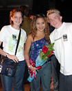 poses backstage with LFC's Nina Tamburello and Columbine survivor