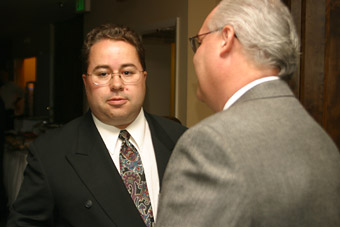 Berglund enjoys a few moments behind the scenes with Michael Tamburello—one