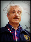 the "born-again" veteran instructor dressed in blue jeans and a striped