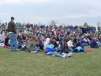 Columbine students and alumni gather for 3rd anniversary memorial at Clement Park in Littleton, Colorado