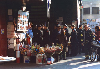 New York firestations received multitudes of vistors daily who leave heartfelt tributes and sign guest books to show their support and offer condolences for over 400 men who perished in the World Trade Center.