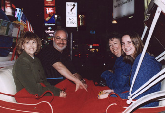 Beth Nimmo, Michael and Nina Tamburello, and Linda Arnold enjoy a midtown carriage ride in Times Square on there arrival to New York.