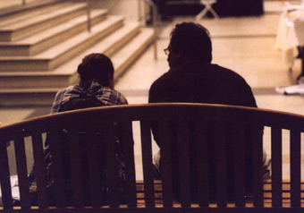 Church in the City's, Jude DelHierro, counsels a teen after LFC's guest engagement at the SUNY Student Activities Center on November 6, 2001.