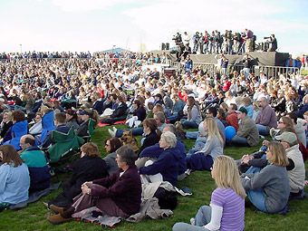 The fifth anniversary honoring the victims of the Columbine tragedy held at Clement Park in Littleton, Colorado was considered by many to be a very spirited event where healing and closure took place. Even smiles could be seen on many faces. The weather was clear and warm with just enough wind for kites to appear in the distant, but a too breezy for the any candles to be lit during the candlelight vigil phase later that evening.