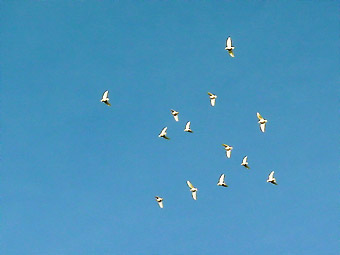 As Columbine principal Frank DeAngelis slowly read the names of the 13 killed that day, a bell tolled and 13 white turtle doves were released. As the event continued with inspiring music and the words of some of the others who also spoke, the doves continued to fly in circular motion over those who attended the memorial. |