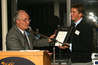 Michael Tamburello proudly presents Dale MacDonald with an award